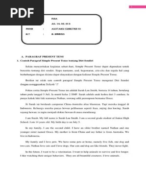 Berikut ini salah satu contoh paragraf simple present tense mengenai diri .