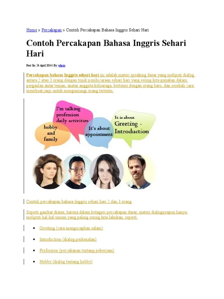 Berikut ini beberapa contoh dialog bahasa inggris. Contoh percakapan 2 orang tentang pendidikan. Untuk contoh percakapan bahasa inggris kita bahas di artikel selanjutnya. Dalam sebuah percakapan harus terjadi feedback atau timbal . Dialog merupakan percakapan timbal balik antara dua orang atau lebih.